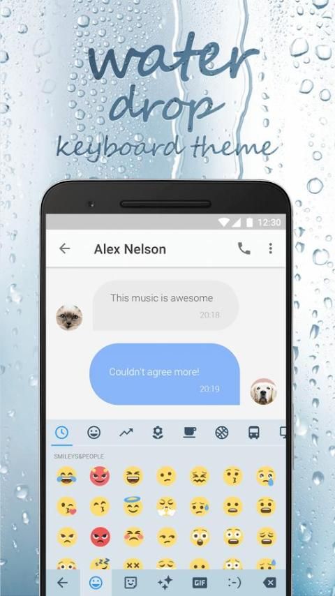 1. Скачать Water Drop Emoji клавиатуры Тема и Facemoji клавиатуры (оба БЕСПЛАТНО!)