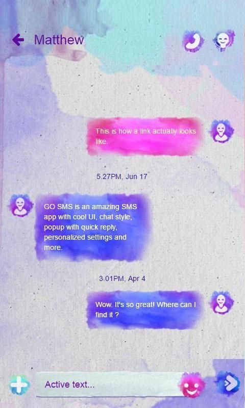 Проверьте наши последние GO SMS тему: Акварели GO SMS! Специально созданный для GO SMS, мы приносим цвета в ваш мир текстовых сообщений!