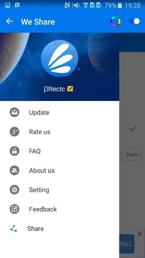 Не тратит мобильные данные, в пределах 50 метров, с помощью We Share, вы можете переводить файлами с друзьями и семьей. Так легко и удобно.