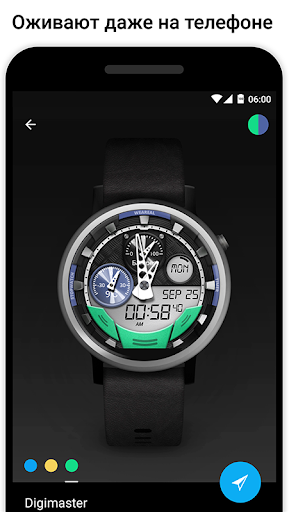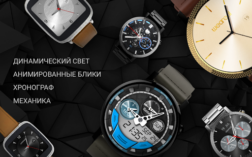 Циферблаты в приложении выглядят точь-в-точь так, как будут выглядеть на ваших часах и оживают при вращении телефона.