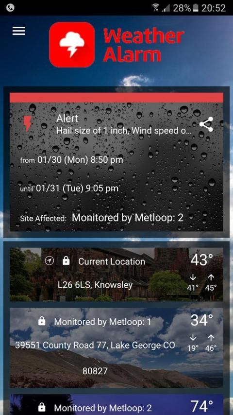 Мы используем состоянии современных технологий военного класса, с живыми оперативных метеорологов в цикле и обширной проверки сети, чтобы обеспечить точечные суровые погодные предупреждения для вашего дома, бизнеса, имущества или мобильного местоположения.