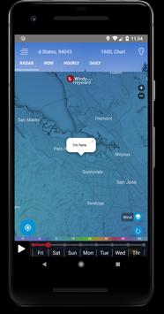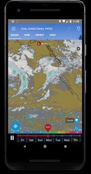 Daily weather, hours: you can check the weather by day, hour right on the radar or under the details table, and the weather for 7 consecutive days