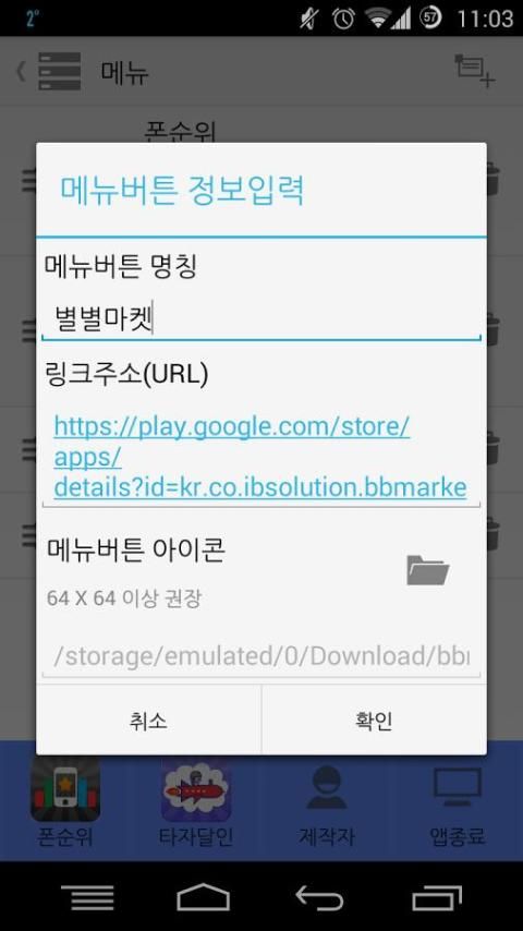 - 앱설정 앱이름, 앱아이콘, 패키지이름 등을 설정 하는 기능