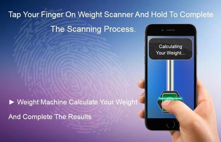 Вес машина сканирует ваш вес тела с помощью отпечатков пальцев. Сколько веса! Теперь детектирует его с помощью мобильного телефона, мобильный сканер веса машины является удивительным цифровыми весами приложением для андроид мобильного, который просто определить и рассчитать вес тела.