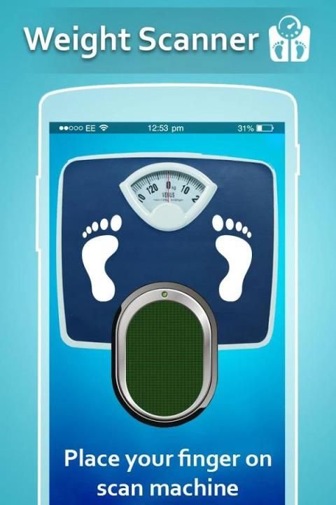 Вес машины сканер сканирует ваш вес тела с помощью отпечатков пальцев. Сколько веса! Теперь детектирует его с помощью мобильного телефона, мобильного веса машины Сканера шалости является удивительным цифровыми весами приложением для андроид мобильного, который просто определить и рассчитать вес тела.