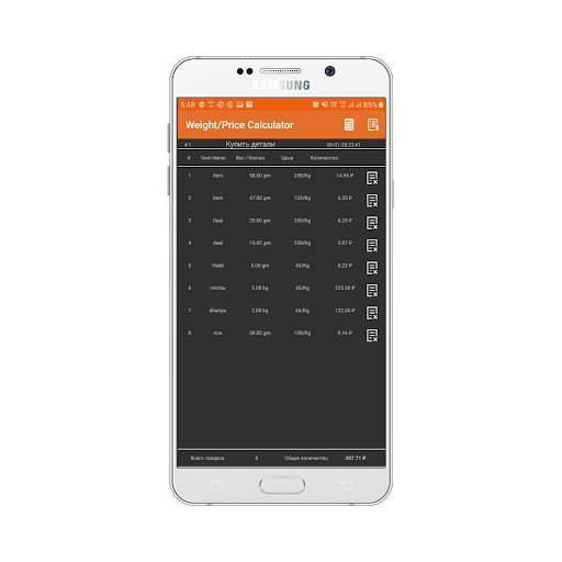 Многие люди выходят на рынок и сталкиваются с проблемами, чтобы быстро выполнить такой расчет. Местный лавочник использует эту слабость. Вы можете быть обмануты местными владельцами магазинов. Это приложение дает вам правильную цену заданного веса и правильный вес заданной цены в соответствии с ценой за килограмм любого материала. Теперь это приложение доступно на английском, французском, русском, немецком, испанском, итальянском, хинди и урду.