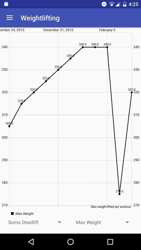 После каждой тренировки вы входите, вы будете иметь возможность увидеть свой прогресс с течением времени для каждого упражнения вы выполнили. Простой для понимания графики позволит вам отслеживать ваш максимальный вес, объем, и общее число повторений в течение долгого времени для каждого упражнения вы выполнили.