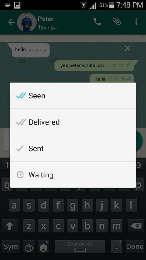 - Изменить ожидания, отправленные, доставлено, читать статусы сообщений.