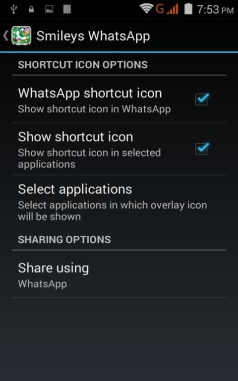 You can in the configuration menu, among other things, change the language or disable the option to include the Access WhatsApp smile or not, by default, the application includes a shortcut, but if you want to delete just have to disable this option, too, you can choose to send for any application you have in your smartphone .
