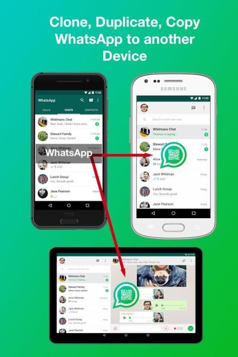 - Синхронизация / Clone / Дублированный WhatsApp счета с одного телефона на другой телефон / планшет.