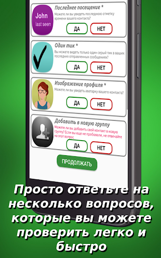 Вы верите, что ваш друг блокирует вас на WhatsApp? Вы хотите знать, блокирует ли вас ваша девушка или парень? Это приложение представляет собой простой и быстрый способ для вас, чтобы увидеть, если кто-то избегает вас на WhatsApp.