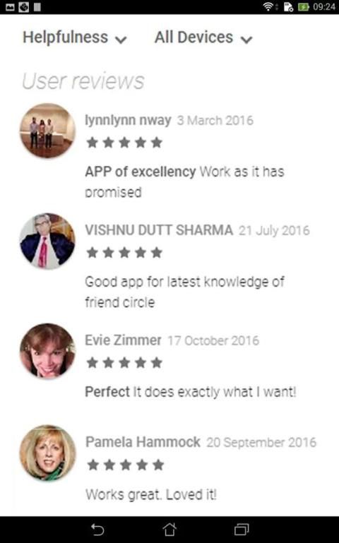 - Друзья Tracker использует эту информацию только для сравнения список друзей с предыдущей (если таковые имеются), и показать вам, если кто-то вас имеющий друзей.
