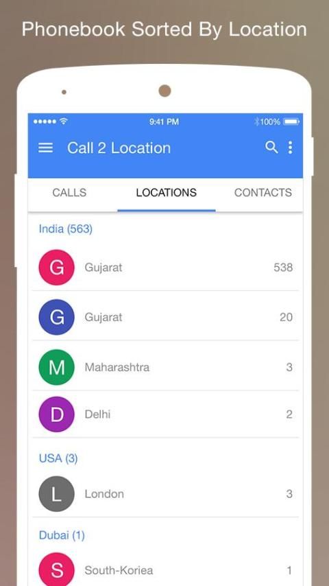 - Звонки по местонахождению: Вы называете событий сортированных по местоположения вызывающих абонентов. Вызов Места отображаются отсортированы по городам (или государства, когда город недоступен).