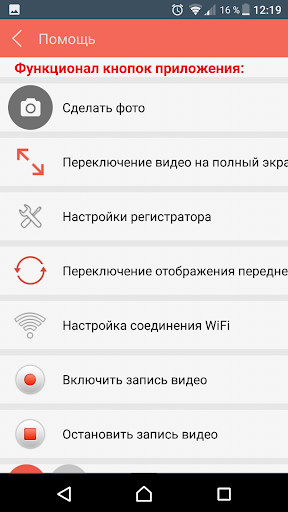 Видеорегистратор не имеет собственного дисплея, для управления настройками и оперативного доступа к архиву видеозаписи используется данное приложение.