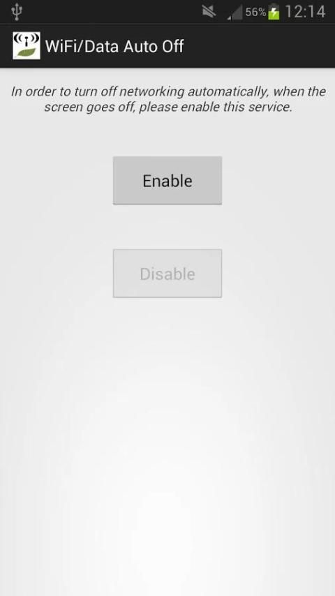 It is intended to be a very easy to use application. The only available setting is "timeout", which is the delay between the moment when the screen goes off (idle), and the moment when the network will be automatically disabled. The default value for "timeout" is 5 minutes.