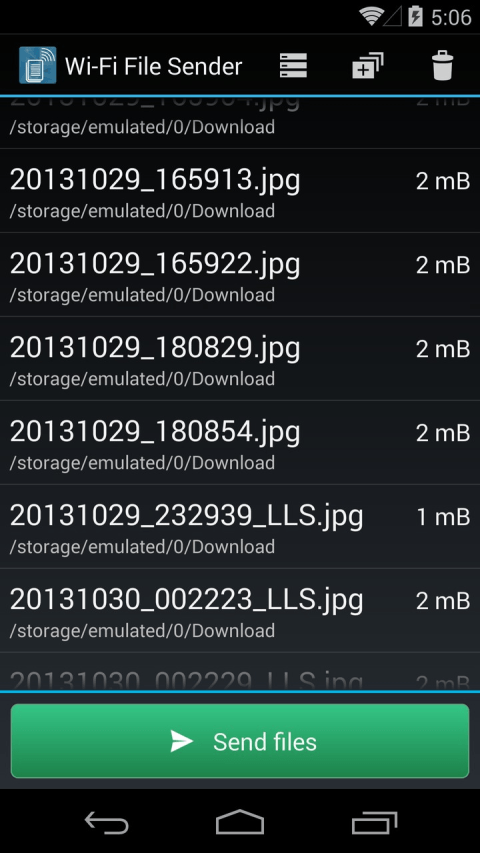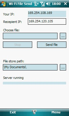 Программа для передачи файлов и папок посредством Wi-Fi. Вам не нужно создавать никакие сервера, просто выберите файлы и нажмите "Отправить". Как пользоваться: 1. Устанавливаете Wi-Fi соединение между двумя устройствами (компьютерами, планшетами, коммуникаторами). Допустимо соединение как напрямую, так и через роутер. 2. Запускаем программу на обоих устройствах. В поле "IP получателя" должен автоматически подставиться IP-адрес другого из поля "Ваш IP". 3. Выбираем папку для сохранения файлов. 4. Выбираем файл и нажимаем "Отправить". Также существуют версии для Windows Mobile и PC (вы можете передавать файлы между любыми устройствами на этих платформах).