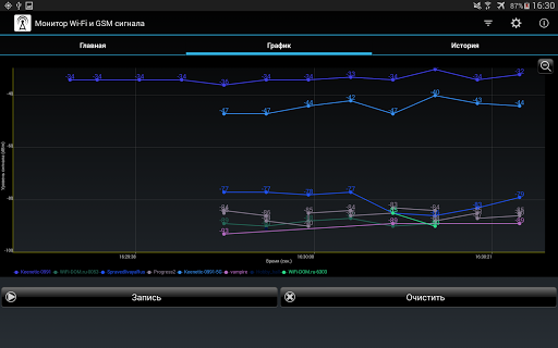 Вы можете записать измерения уровня сигнала для дальнейшего использования.