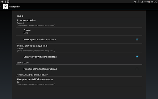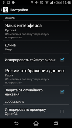 - Игнорировать или нет таймаут экрана (может повлечь дополнительный расход батареи);