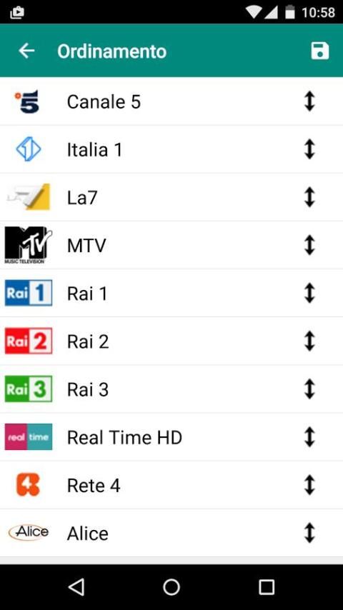 - Ordinamento dei canali preferiti