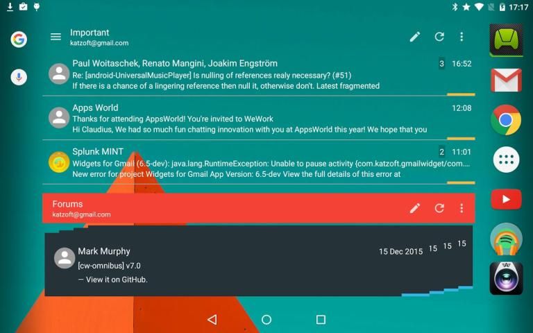 - Быстро просматривать и иметь дело с вашей почте из виджета - нет необходимости открывать Gmail, чтобы ответить, отметить как прочитанное, архиве, удаления или просмотра вложений.