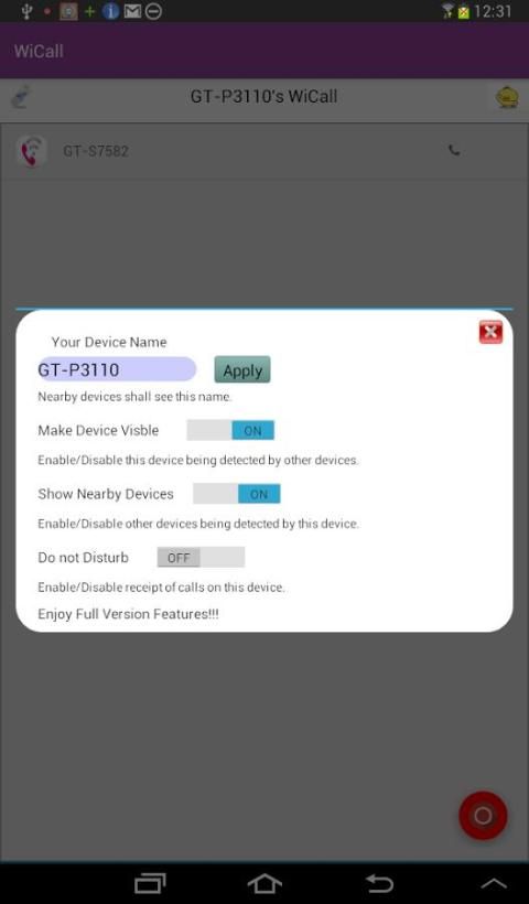 После подключения по Wi-Fi приложение будет автоматически обнаруживать соседние устройства Android / Apple, работающих Wicall и перечислить их на экране.