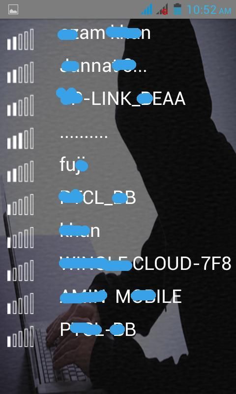 Wifi hacker app which allows you to pretend to break the password of all networks nearby.This app may look like can hack any wep, wap-psk or any other encryption.The app will catch all the available Wifi networks nearby you.Just have fun with your friends and family.This app simulates hacking and cracking any wireless encrypted network and router.Wifi hacker is best way to have fun with your friends. How to Use: 1- Find places where wireless networks are available. 2- Open Wifi Hacker and hit the scan button. The Wifi Hacker will load all the wireless networks available around you. 3- Select the wifi name you want to hack. 4- The wifi hacker will show the fake animations which analyzes the wifi info and breaking process. 5- And the password will be displayed. DISCLAIMER: This is a prank app & does not hack any network. This wifi hacker is only made for fun only with your freinds and family.