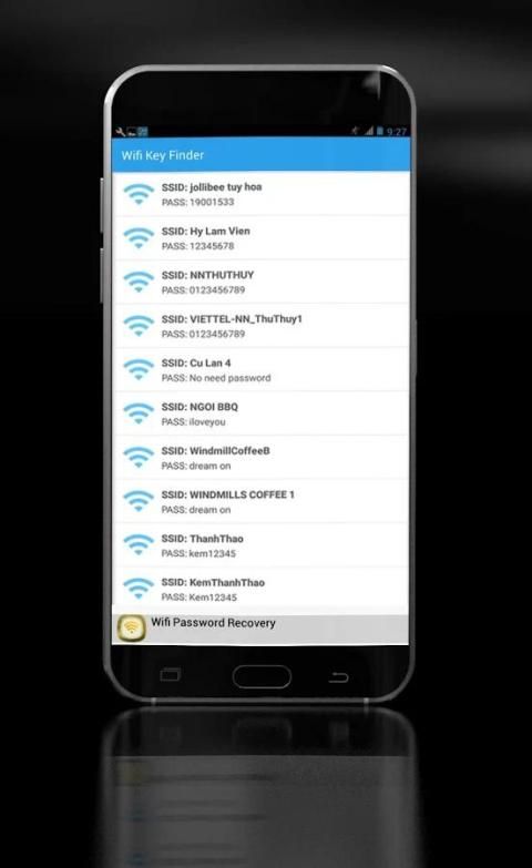 Wi-Fi Key Finder автоматически найдет потерянный пароль WiFi в минуту. В нем перечислены ваш Wi-Fi пароль, который вы не можете видеть WiFi пароль в настройки устройства по умолчанию. Вы можете скопировать пароль в буфер обмена или экспорта паролей в файл.