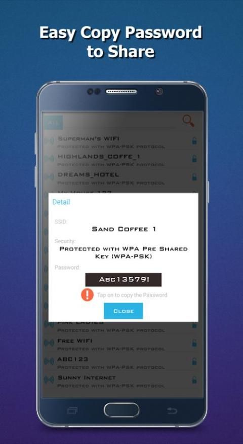 WiFi Пароль 2016 г. показывает пароль WiFi сети, которые вы подключили раньше.