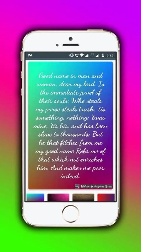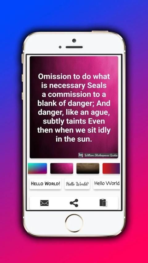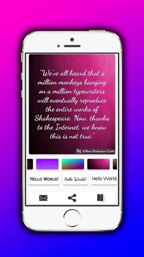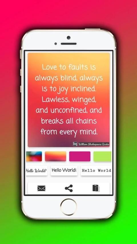 Создать неограниченный Шекспир цитирует изображения, изменив свой стиль фона и эффективного шрифт. Настройте свои любимые цитаты и обмениваться ими на Facebook, WhatsApp, Twitter, Instagram и многое другое.