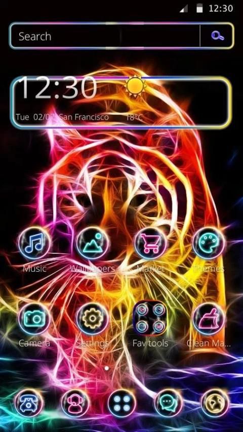 Вы можете сделать свой телефон выглядеть новый с помощью лучистого леса темы короля тигра вы получите полностью настроить интерфейс телефона, как эта тема будет меняться мобильные обои, мобильные иконками и великолепная графика будет включать в себя смелость, ловкость, мудрость в повседневной жизни счастливым и смешно way.so попробовать прямо сейчас! ..