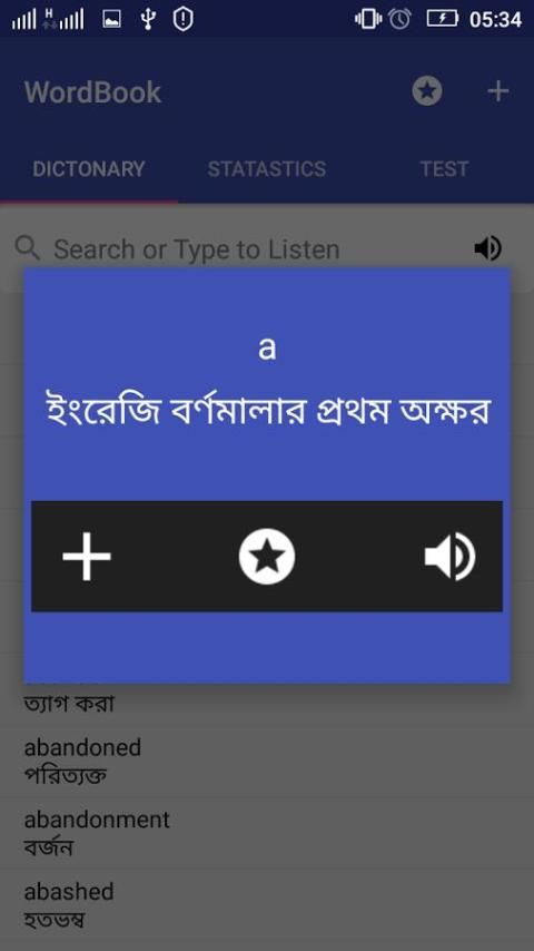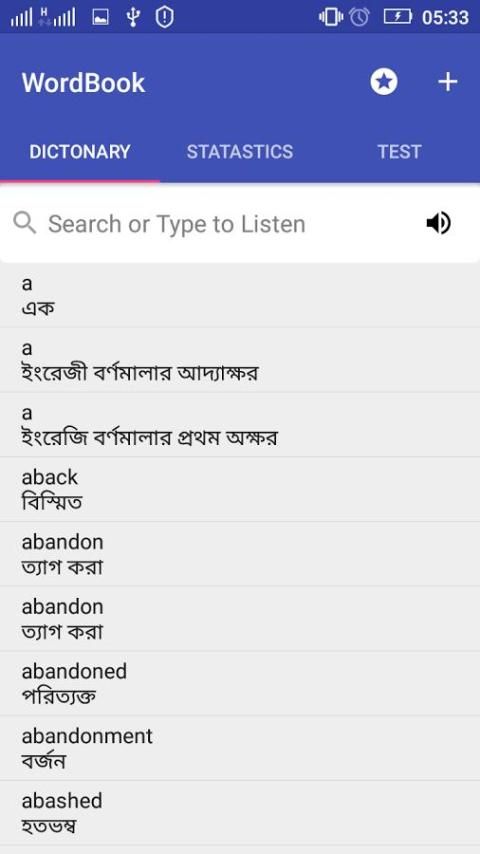 Это личное слово отслеживания словарь приложения со стандартным фонетическим каждым существующим словом в мире. Вы можете получить правильное произношение, просто набрав или поиск его Вы можете сохранить свой рост обучения. Просто нажмите кнопку плюс после изучения его и приложение покажет вам график в основе ежедневных еженедельно и ежемесячно. Вы также можете дать испытание вашего роста обучения после определенного количества слов ученых. И есть несколько слов по умолчанию для теста, прежде чем вы узнали, по крайней мере 20 слов.