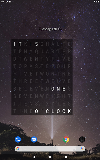 This App provides a widget, that can display the time with words. The widget will highlight the corresponding chars that form the time: "it is twentyfive to ten".