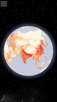 Это показывает страны и их флаги, а также несколько различных наложений, включая ВВП, продолжительность жизни и спутниковую точку зрения на землю ночью.