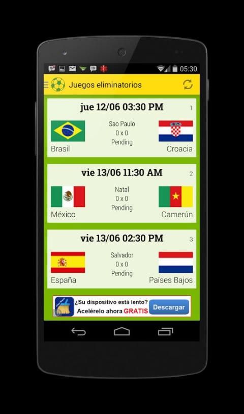 Приложение, которое держит нас в курсе того, что произошло в Кубке мира Бразилии 2014 года, в практична, удобна и интуитивно понятным.