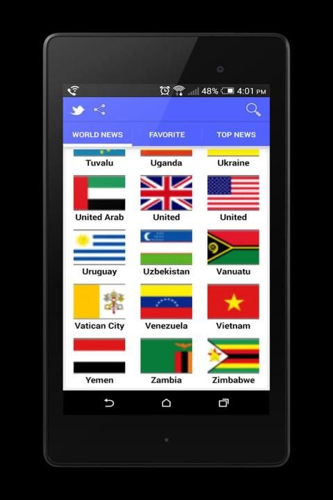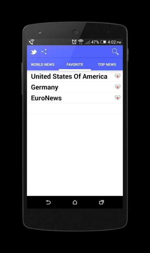 2. Любимое - Как только вы найдете источник новостей вы любите читать часто, то не стесняйтесь, чтобы отметить его как фаворита и этой источника новостей / стране всегда будет удобно расположенный на вкладке избранных.