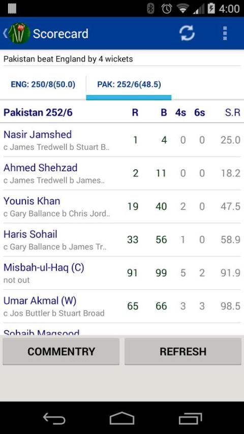 2. Provides Ball by ball Scorecard and Commentry with Very fast updates.
