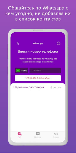 • WtsAppy дает Вам возможность начать разговор по WhatsApp непосредственно путем копирования / вставки номера в приложение WtsAppy.
