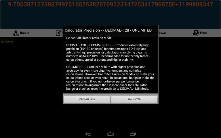 - получить чрезвычайно точные результаты (с точностью до 1/10 ^ 10) на очень больших численных расчетов с числами в диапазоне до (10 ^ -6144 10 ^ 6144) и высокой точности результатов (1/10 ^ 5) на гигантских числовых данных до [10 ^ 2 млрд] !!