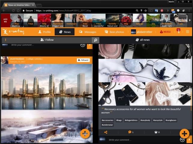 Приходите подключиться к сообществу X-объединяющим смотреть, обмениваться и рейтинг фотографии, комментарии, писать сообщения и встречаться с людьми, обмениваться событиями, фото, музыка, место (StreetView) и т.д.