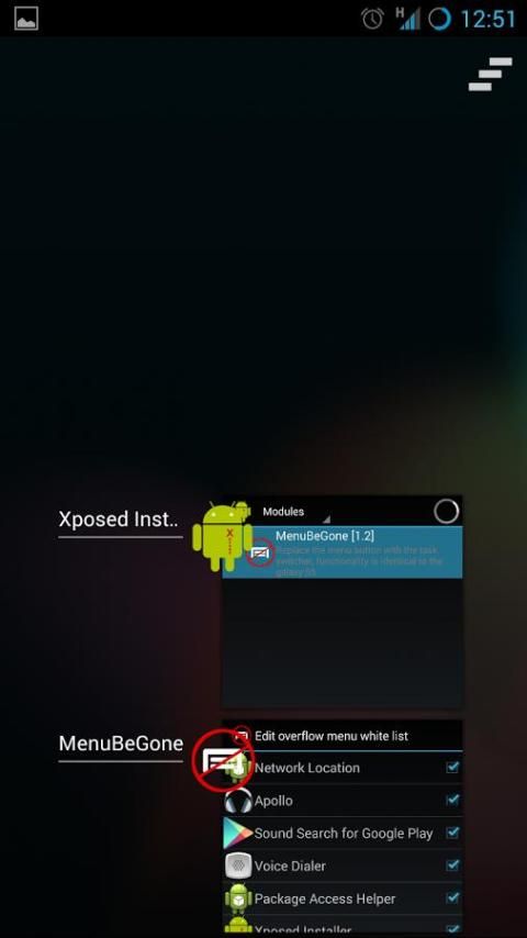 Данный модуль заменяет кнопку меню аппаратных с переключателя задач. Это также заставляет устройство, чтобы показать (также называемый кнопку переполнения действий) на кнопке меню экрана.