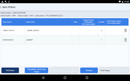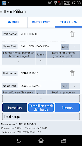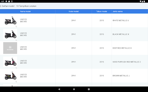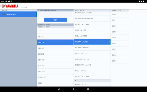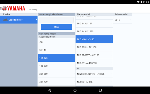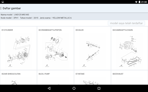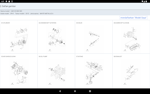 Каталог детали для продуктов, продаваемых в Индонезии Yamaha Motor Corporation, которые можно увидеть. В таблице содержимого используется небольшая масштаба