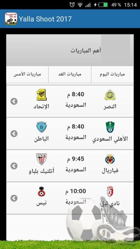 YallaShoot تطبيق يحتوي على جميع الدوريات كرة القدم و آخر الاخبار الرياضية وملخص المباريات والاهداف