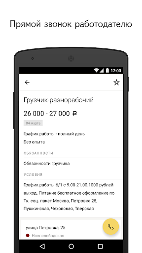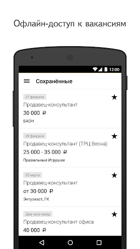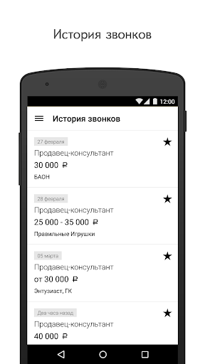 Приложение позволяет подбирать вакансии по зарплате, месту и графику работы. Оно также поможет специалистам без опыта и тем, кто ищет временную подработку или должность с ежедневными выплатами. Интересные предложения можно добавить в «Сохранённые», чтобы потом посмотреть их в офлайне. Вся история звонков доступна в отдельном разделе — вы сможете в любой момент проверить, с кем вы уже общались, и при необходимости позвонить ещё раз.