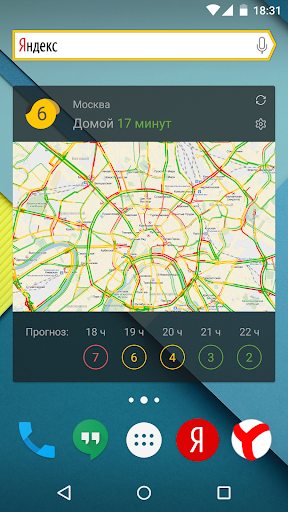 Виджет Яндекс.Карт помогает оценить загруженность дорог, не запуская приложение. Для более чем 30 крупных городов России, Украины, Беларуси и Турции общий уровень пробок оценивается в баллах, а жителям Москвы, Санкт-Петербурга и Киева доступен еще и прогноз на несколько часов вперед. Чтобы перейти в Яндекс.Карты и проложить маршрут, достаточно одного нажатия.
