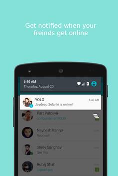- Schedule Message: We know there are times when you want a message to be sent at a certain point of time. Yolo makes it possible to send messages even when you are asleep :P