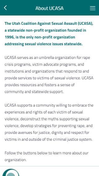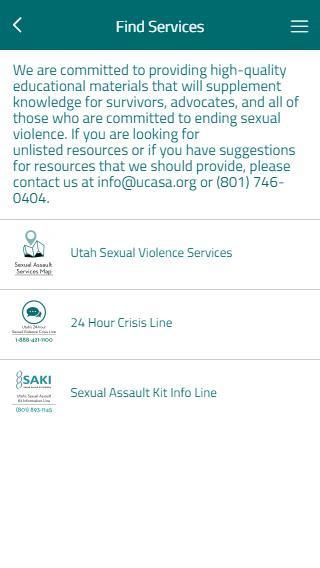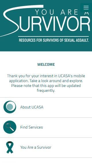 Вы Уцелевший мобильное приложение было написано для жертв сексуального насилия и домогательств, чтобы обеспечить информацию о влиянии сексуального насилия и оказание помощи выживших в их усилиях по излечивают от этой формы насилия. Это приложение не предназначено для замены услуг, предоставляемых обученных адвокатами и специалистами, но и является важным ресурсом, чтобы дополнить критическую работу, проделанные ими.