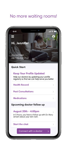 24/7 Онлайн-врач Чат - проблемы здравоохранения не всегда случаются в течение рабочих часов. Доступ к вашему врачу может быть дорогостоящим, неудобным и часто требует долгое ожидания встречи (и в зал ожидания!) Наша реальная связь с врачом означает, что ваши вопросы отвечают, когда вам это нужно, от удобства дома.