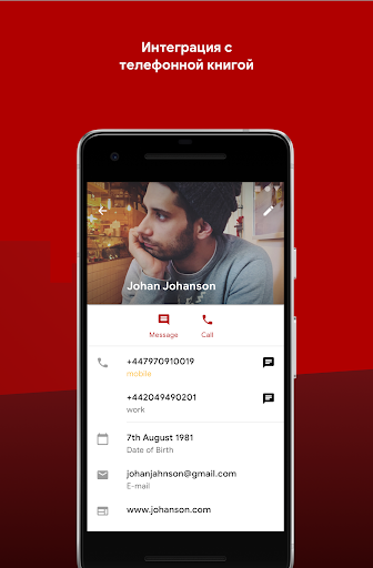 - автоматическая интеграция с телефонной книгой (включая возможность копирования номера)