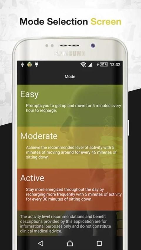 Отсутствие физической активности в течение дня может быть вредно для вашего здоровья. Побег риски садясь слишком долго с помощью Zenergy. Zenerger стимулирует вас, чтобы переместить в течение дня, подключив физической активности в виртуальной батареи. Прогулка по заряжает батарею, в то время как сидеть истощает его. Как только батарея разрядится, приложение попросит вас встать и двигаться. У вас есть возможность настроить приложение, выбрав уровень активности подходит для вас, настройке пользовательского зарядки / осушение раз, количество и частоту уведомлений, автоматического запуска в определенные дни недели и т.д.