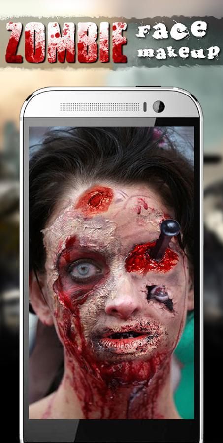 Ужас и забавный способ мгновенно макияж вашего или ваших друзей столкнуться в зомби! Приложение содержит много Наборы для макияжа Зомби. Легко использовать. Вы не разочарует после загрузки приложения. Мы обещаем вам.